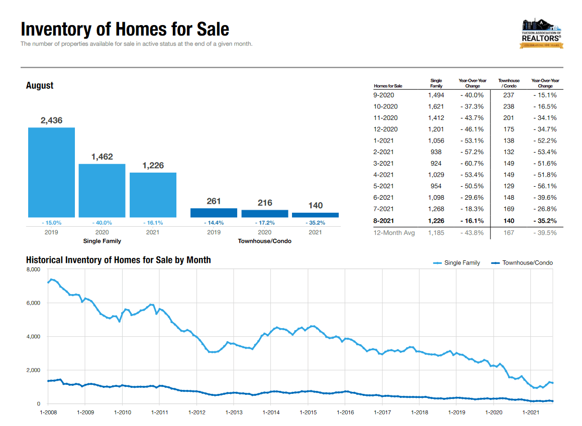 Demand is strong and inventory continues at striking historical lows. Supply and demand are driving prices up with cash buyers standing in line to buy a Tucson home.