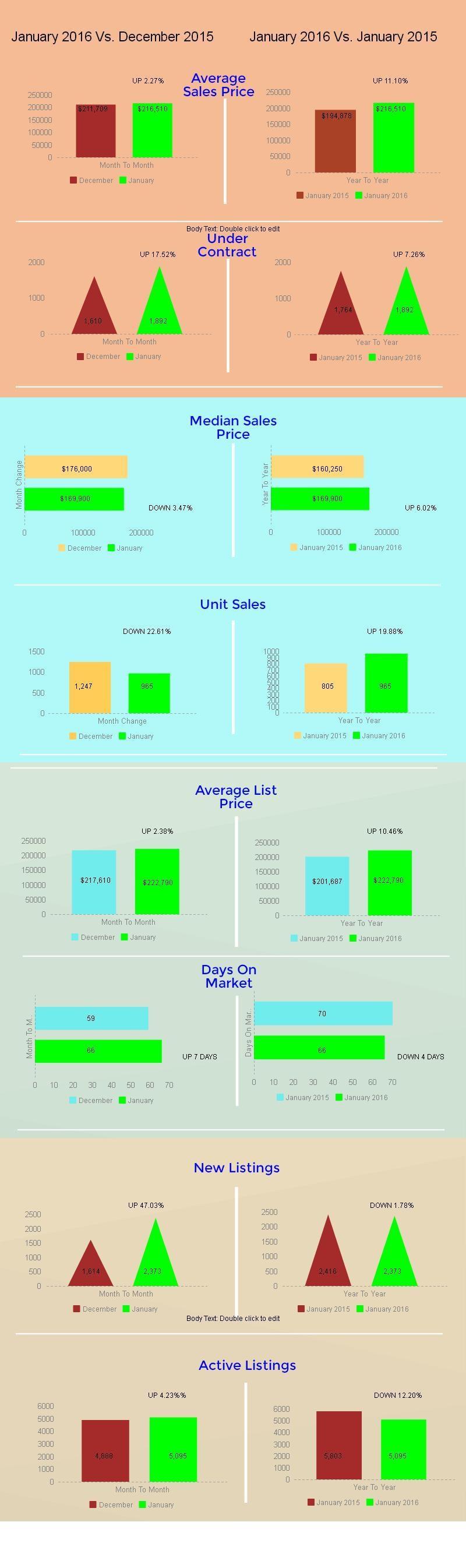 The Tucson Housing Market January report indicates the Average Tucson Sales price increased 2.27% from December 2015 to $216,510. Year of year January average