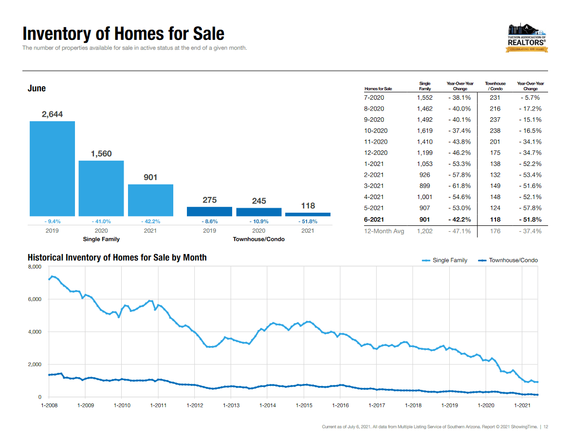 Demand is strong and inventory continues at striking historical lows. Supply and demand are driving prices up with cash buyers standing in line to buy a Tucson home.