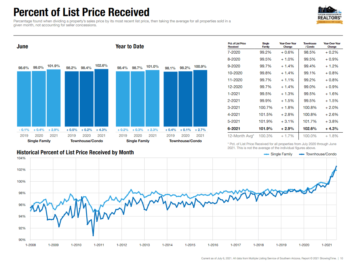 Want to negotiate? Forget about it! If you find the right home, be ready to pay very close to list price or OVER in many areas of greater Tucson.