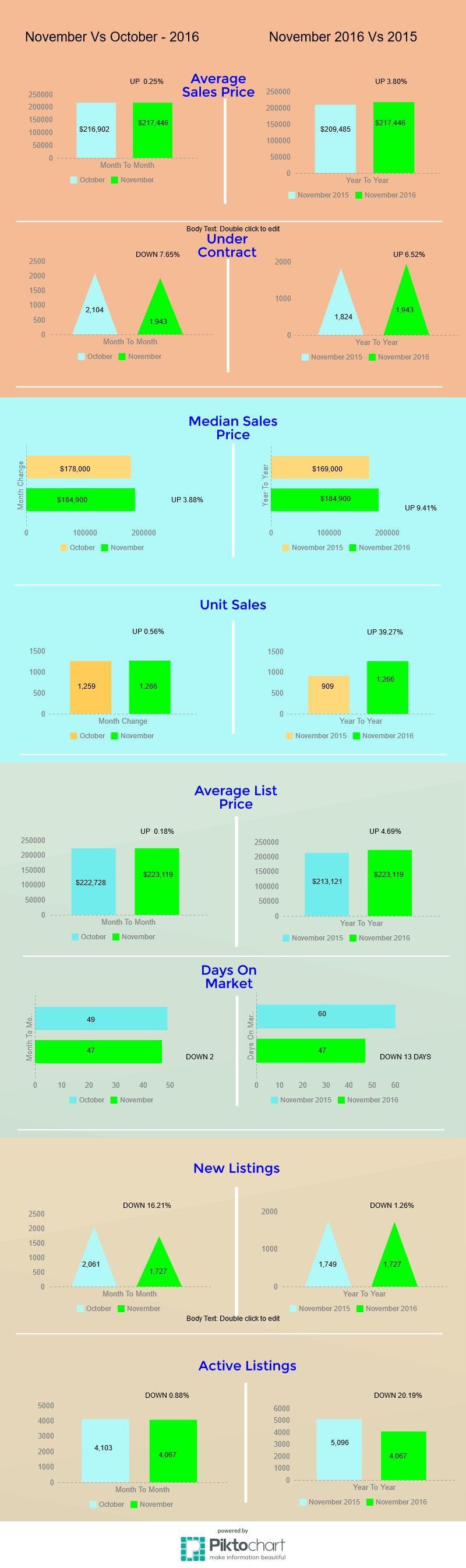 November’s median sales price INCREASED 3.88% from October to $184,900. Year over Year the median sales price INCREASED 9.41%.