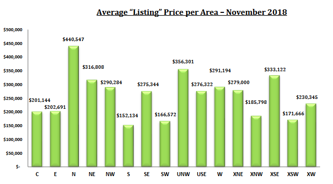 But the more important question is “What is the average list price by area of Tucson?”