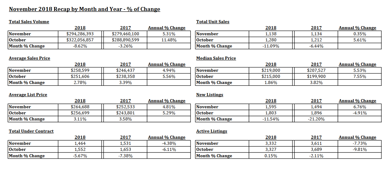 Days On Market DROPPED TO 38 days in November. Four of the eleven months in 2018 had Days On Market under 40 days. Buyers continue to pounce on well-priced homes.