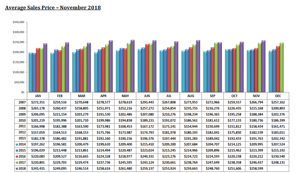 The Tucson Housing Market November 2018 report shows the average sales price INCREASED 2.78% to $258,599. And UP Almost 5.0% from November 2017.