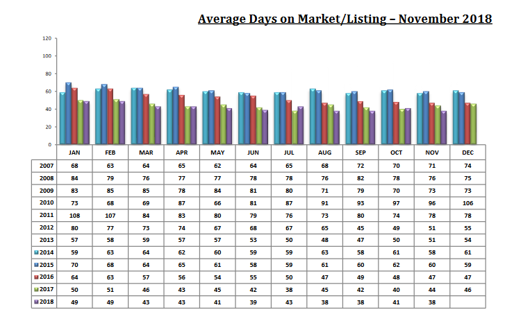 Days On Market DROPPED TO 38 days in November. Four of the eleven months in 2018 had Days On Market under 40 days. Buyers continue to pounce on well-priced homes.