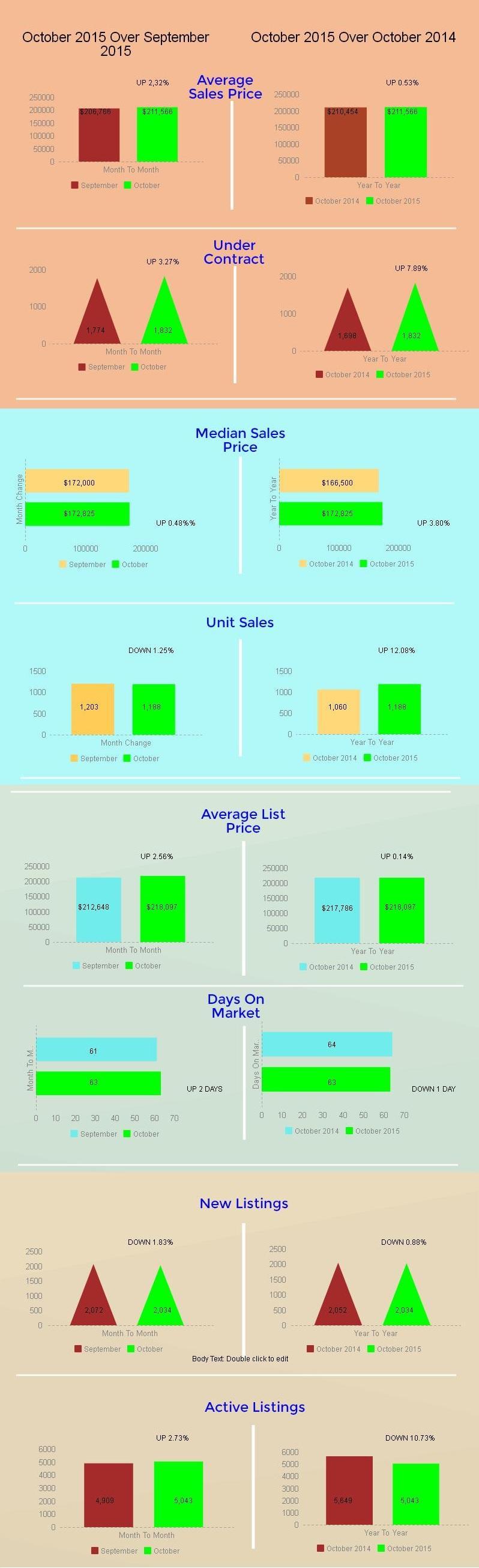 The Tucson Housing Market October 2015 report showed sales and listings price increased from the prior month of September 2015.