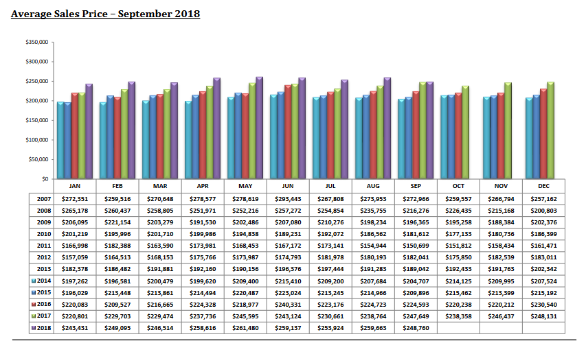 The September 2018 average sales price stands at 85% of the June 2007 peak for average sales price.