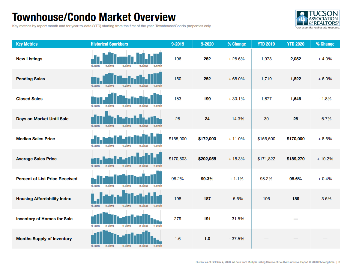 The Tucson Housing Market September 2020 – Condos & Townhouses